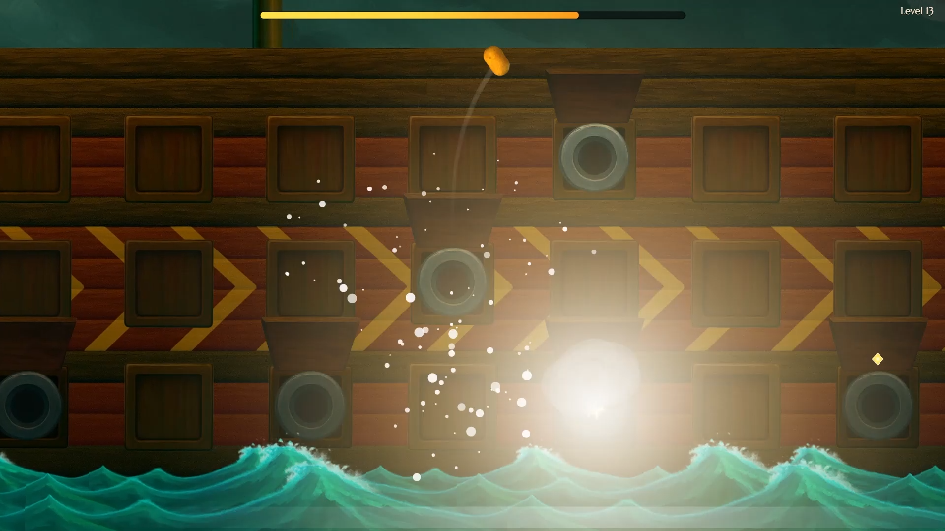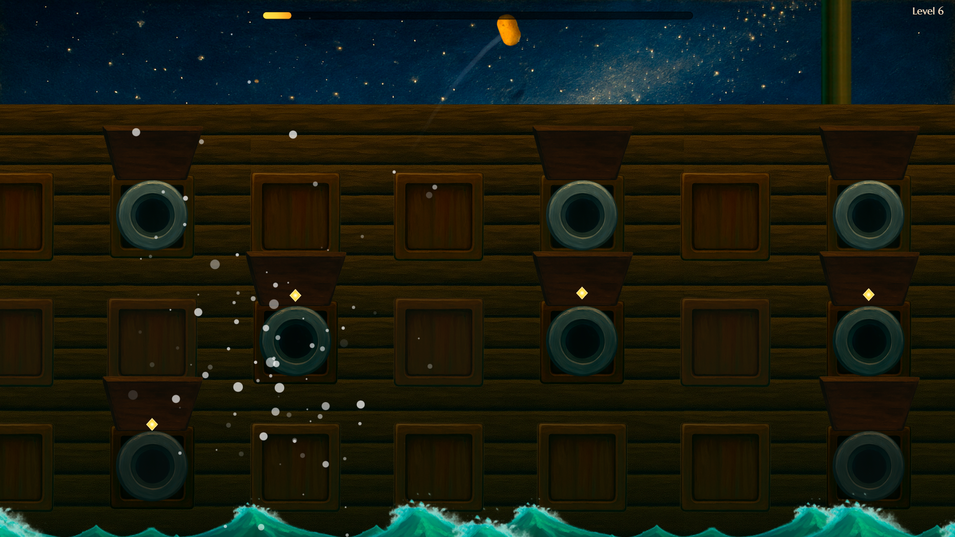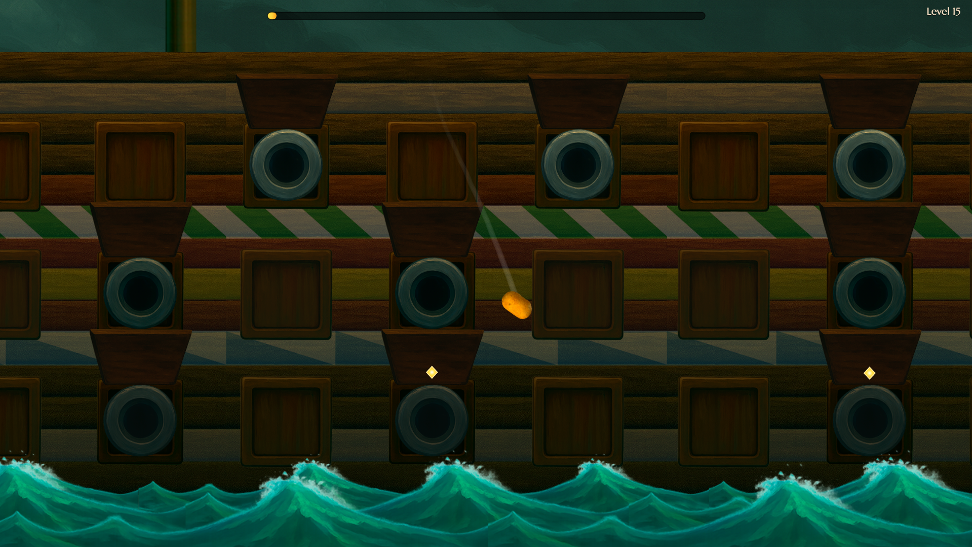 Potatoes And Cannons is a fast-paced arcade platformer where you launch a brave potato from cannon to cannon on a rocking pirate ship. Time your jumps, collect stardust and treasure chests, dodge exploding barrels and don’t fall into the water!